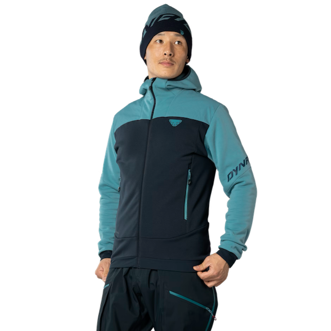 Retail $299.95. The Dynafit Radical Hooded Jacket is made of 100% recycled materials and offers impressive performance as an uncompromising and comfortable insulating layer for every ski tour. This smart insulating jacket with high-performance Gold insulation scores points with its outstanding warmth-to-weight ratio and environmental consciousness. It is simple to wash and keeps you reliably warm even when wet. Thanks to its minimal packsize, you can find room for it in your pack on any tour. Its soft feel ensures the highest comfort, and the cut is clean with a sporty vibe so you can easily wear it under a weather protection jacket. Its water-resistant outer shell also functions well on its own. The hem and the hood can be adjusted for your personal needs so the cold and wind have no chance. On the front, this synthetic insulating jacket features two large zip pockets to warm your hands or to stow small items.