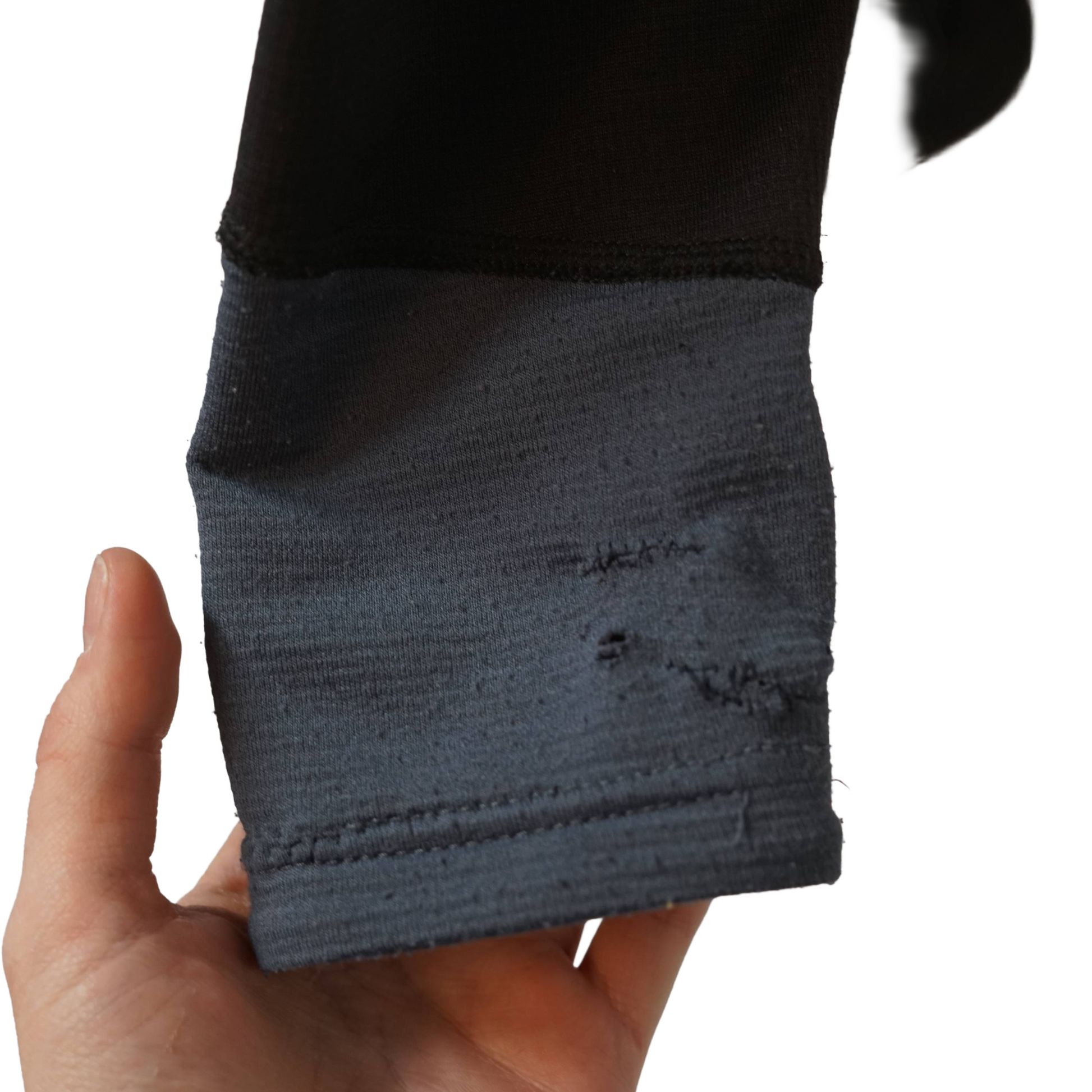 This pre-owned Norrona hoody is in good condition overall, with some holes and light repair marks on both cuffs. It still functions great as a versatile layering piece, offering effective moisture wicking and a hood that helps keep your ears warm during colder outings.